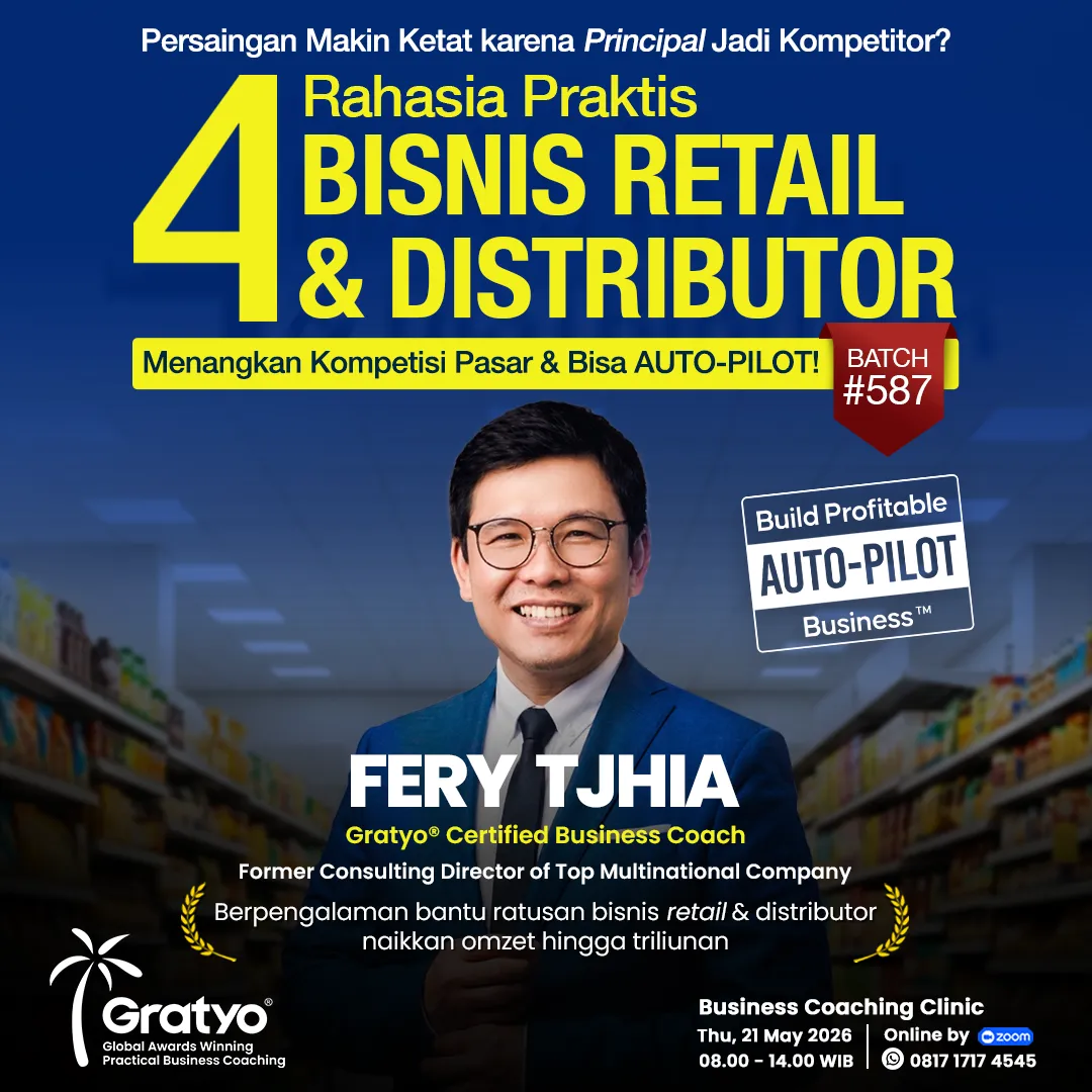 Kami di Gratyo® Practical Business Coaching yang dipimpin oleh Coach Yohanes G. Pauly yang dikenal sebagai Global Awards Winning Business Coach. Membantu para Pemilik Bisnis dan calon Entrepreneurs untuk membangun Bisnis menjadi semakin Profitable & AUTO-PILOT.